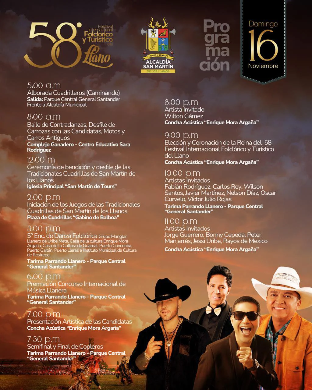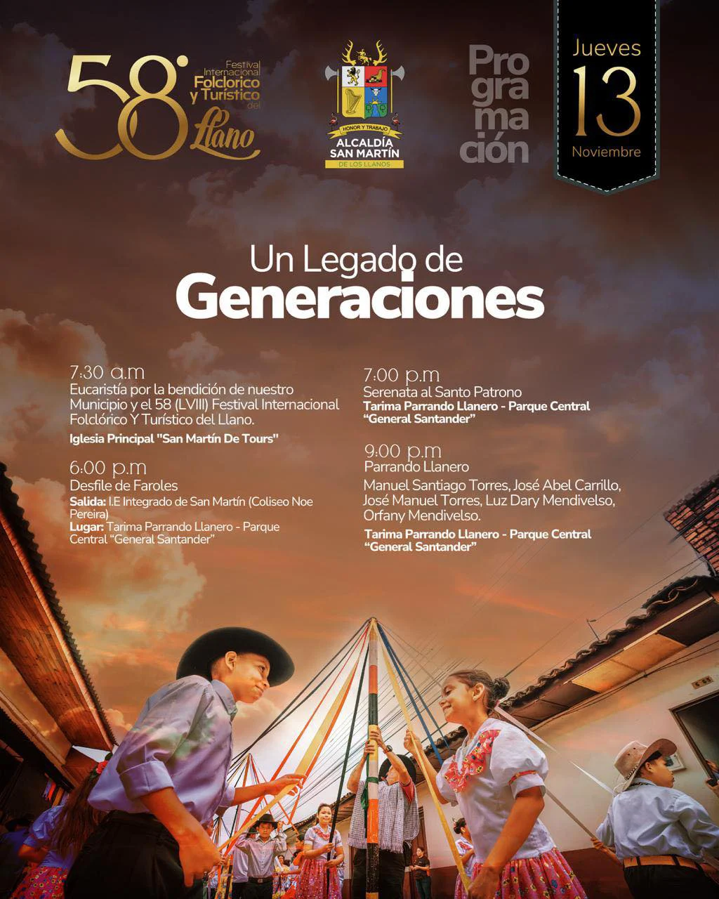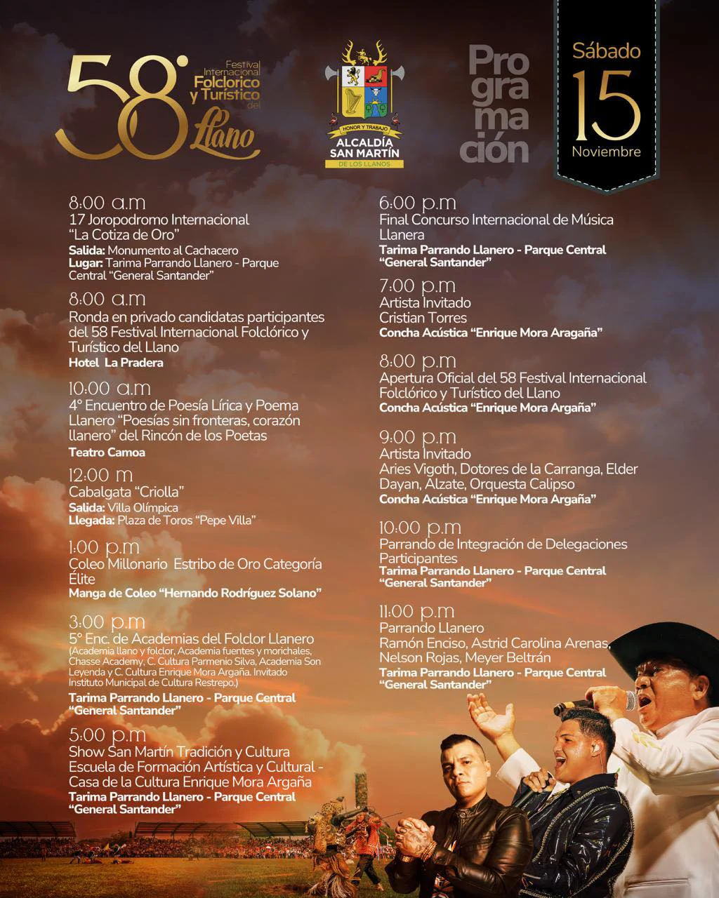 Del 13 al 17 de noviembre, San Martín se viste de fiesta con música, coleo, danzas, joropódromo y gastronomía típica. Aquí te compartimos los eventos más esperados: